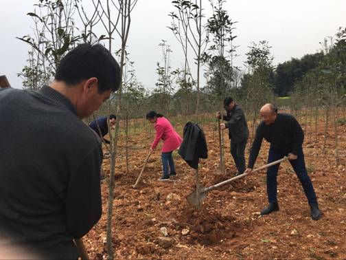 3月9日,我院教工党支部在院长石正义的带领下,全体党员整装出发去往咸安区南川村开展义务植树活动,南川村是2016年中央财政林业科技推广资金支持咸宁市桂花栽培标准化示范区建设项目,这里有100亩桂花示范基地,我们一行人在咸宁市林业科学院熊胜华的指导下,有条不紊的给桂花树挖土,扶正,松土,同时清除杂草,顺利的完成了预期任务。