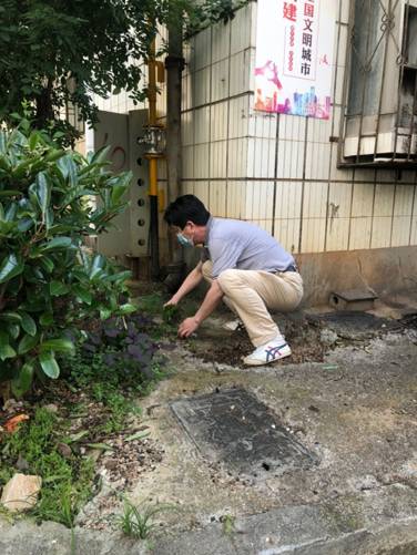 参加志愿服务活动的老师和同学在学校行政楼前集合领取工具,统一步行到电信小区。此次活动的任务是清洁小区路面,清理楼栋周边杂草、土渣、烂泥、杂物等。大家按照预先分组分区域进行劳动,因天气炎热,同学们不一会就大汗淋漓,但人人精神倍增,干劲十足,展现了湖科学子积极向上、精神饱满的风貌。经过一小时的清扫,小区的面貌焕然一新。