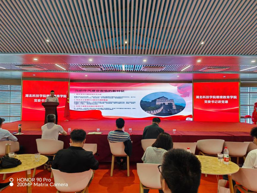 在党建展览馆,预备党员韩洪如同志带领全体党员重温入党誓词后,党委书记金延安主讲“扎实开展深入贯彻八项规定精神学习教育 推动作风建设走深走实”专题党课。他从中央八项规定的历史意义与政治内涵,准确把握深入贯彻中央八项规定精神学习教育的实践要求,构建常态长效的中央八项规定贯彻落实机制三个方面进行讲述。