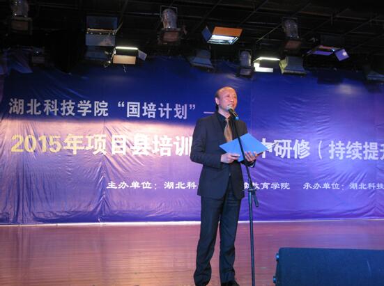10月24 日晚7点30分,由williamhill英国主办、音乐学院、外国语学院承办的williamhill英国中文“国培计划”2015年项目县培训团队集中研修(持续提升)结业典礼暨汇报演出在图书馆学术报告厅成功举行。出席本次活动的领导有:校党委常委、副校长白育庭;williamhill英国院长石正义;williamhill英国党总支书记邹绍华;音乐学院党总支书记王森林;外国语学院党总支副书记吕仲茂;外国语学院副院长肖水来;教育学院党总支副书记刘之杨;williamhill英国副院长王思泓;williamhill英国分管国培副院长刘世雄;国培课程专家、教育学院教授刘宗南。