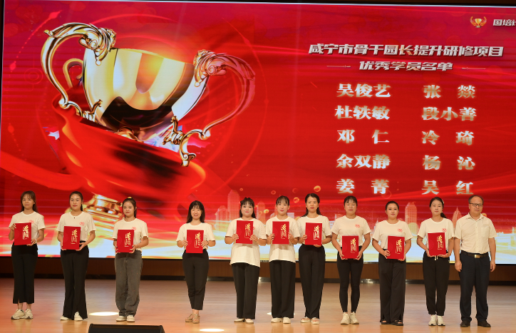 活动现场第三期咸宁市骨干园长班和咸宁市农村幼儿园骨干教师班的学员进行了才艺展示,表演了大型舞蹈《苏幕遮》,歌伴舞《长大后我就成了你》,诗朗诵《牵手国培、筑梦同行》等节目,表现了幼儿园教师的在文艺方面的突出才艺。在第三期培训结业典礼环节,表彰第三期优秀学员。