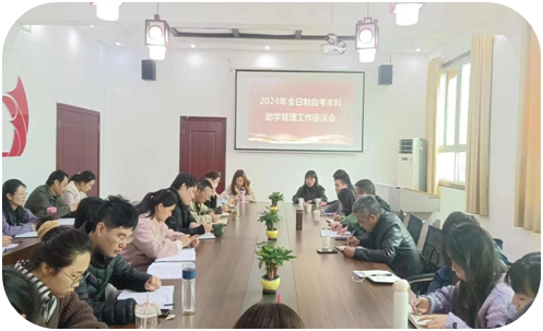 2024年3月25日,williamhill英国召集助学机构负责人及机构全体工作人员就加强自考助学项目规范与发展召开座谈会,院长厉阳春出席座谈会。